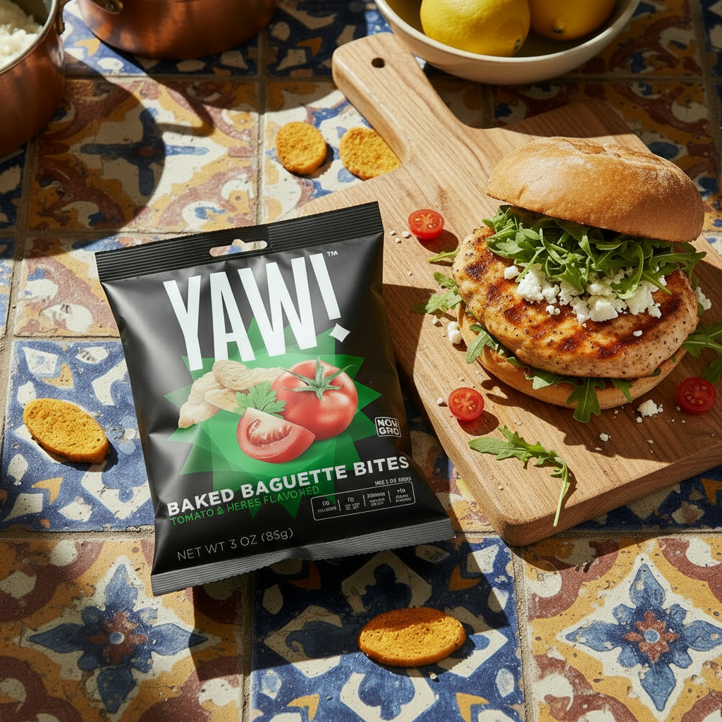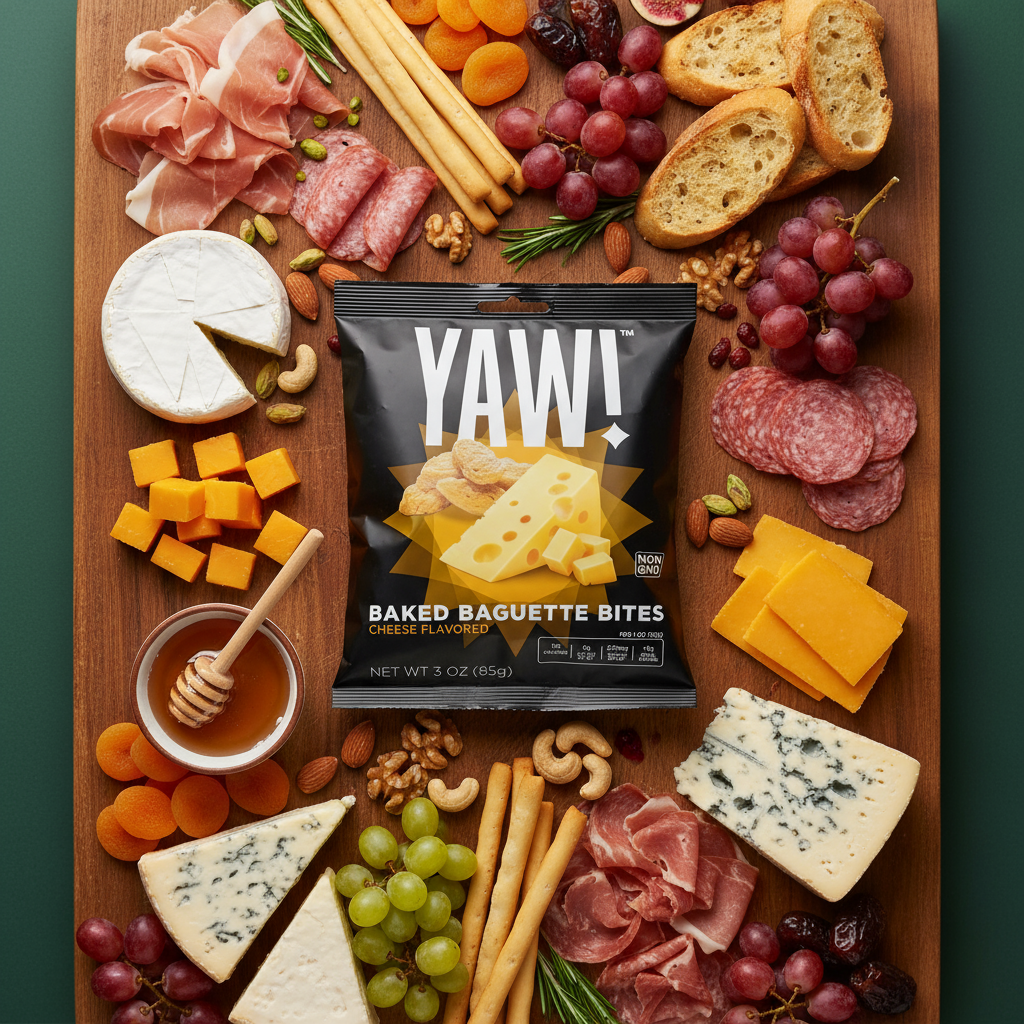 At YAW!, we're not just making snacks, we’re leveling up your snack game. What sets us apart? It all starts with premium ingredients, bold flavors, and a crunch that doesn’t quit. Our Baked Baguette Bites are crafted using innovative baking methods that transform the classic baguette into a crispy, craveable snack like no other. Snack time should be exciting, not ordinary, which is why every bite delivers a punch of flavor and texture—no frying, no shortcuts, just real goodness baked in. Perfect snacking solo or pairing with dips, topping salads, building charcuterie boards, or entertaining guests, YAW! brings the flavor, the crunch, and the wow every single time.